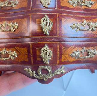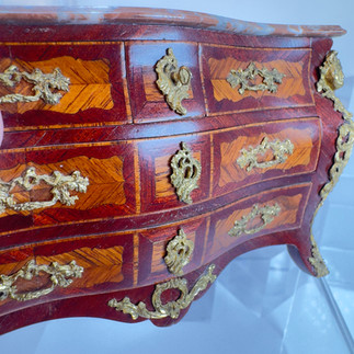 Every Herbillon miniature reflects a deep understanding of period style and fine craftsmanship. Their bombe-front commodes, writing desks, fauteuils, and marquetry tables are distinguished by: